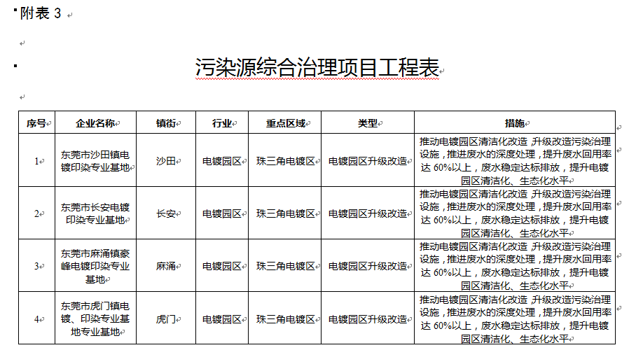 推動麻涌鎮(zhèn)、虎門鎮(zhèn)、長安鎮(zhèn)、沙田鎮(zhèn)四大涉重金屬工業(yè)園區(qū)清潔、規(guī)范發(fā)展。強(qiáng)化涉重金屬工業(yè)園區(qū)的重金屬污染物排放及周邊環(huán)境中的重金屬監(jiān)測,加強(qiáng)環(huán)境風(fēng)險隱患排查,向社會公開涉重金屬企業(yè)生產(chǎn)排放、環(huán)境管理和環(huán)境質(zhì)量等信息。2020年前,通過虎門鎮(zhèn)電鍍、印染專業(yè)專業(yè)園區(qū)(基地)南柵污水處理廠升級改造項目、麻涌鎮(zhèn)豪豐電鍍、印染專業(yè)基地電鍍廢水處理廠一期重金屬廢水深度處理工程、長安環(huán)保專業(yè)專業(yè)園區(qū)(基地)A區(qū)廢水站改造工程、長安環(huán)保專業(yè)園區(qū)(基地)B區(qū)廢水站改造工程、麻涌環(huán)保專業(yè)專業(yè)園區(qū)(基地)污水處理二期工程、虎門鎮(zhèn)電鍍、印染專業(yè)園區(qū)(基地)路東片區(qū)廢水廠升級改造項目等一系列項目的實施,確實加強(qiáng)東莞市重金屬污染治理能力。