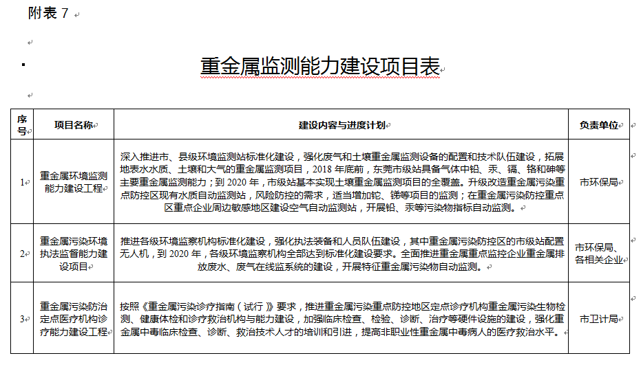 7. 重金屬監(jiān)測能力建設(shè)項目表