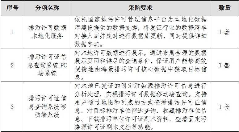 一、采購項目名稱:國家排污許可證系統(tǒng)數(shù)據(jù)本地化服務(wù)