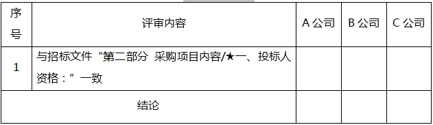 2.投標(biāo)人分欄中填寫“○”表示該項符合審查要求,“×”表示該項不符合審查要求;