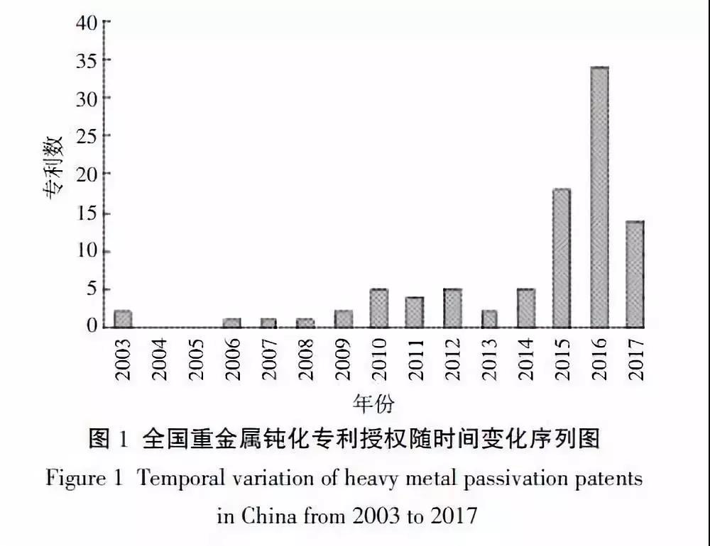 采用文獻(xiàn)計量學(xué)方法全面系統(tǒng)地回顧和總結(jié)已有技術(shù)成果的現(xiàn)狀、特點和趨勢,可以為更深入開展重金屬鈍化技術(shù)的研究工作提供參考和依據(jù)。本文以可檢索到的重金屬鈍化技術(shù)發(fā)明專利文獻(xiàn)為樣本,對專利的時空分布、研究機(jī)構(gòu)、研究方法和應(yīng)用領(lǐng)域,以及鈍化劑的特點、適用范圍和應(yīng)用效果等進(jìn)行文獻(xiàn)計量分析和總結(jié),研究成果為重金屬鈍化技術(shù)的選擇與應(yīng)用提供了參考。