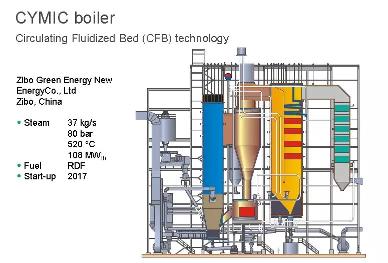 高參數(shù)的循環(huán)流化床焚燒爐具有蒸汽參數(shù)高,熱效率高,處理能力強(qiáng),焚燒工藝的飛灰產(chǎn)量低,可實(shí)現(xiàn)全自動(dòng)化運(yùn)行,無人操作值守,焚燒線年運(yùn)行時(shí)間超過8000h等技術(shù)特點(diǎn)。