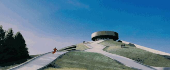 在滑雪道包圍的中心將建造一個(gè)百米高的煙囪,用于排放水汽。到了晚上,激光將被投射在煙圈上,造成炫目的視覺效果。