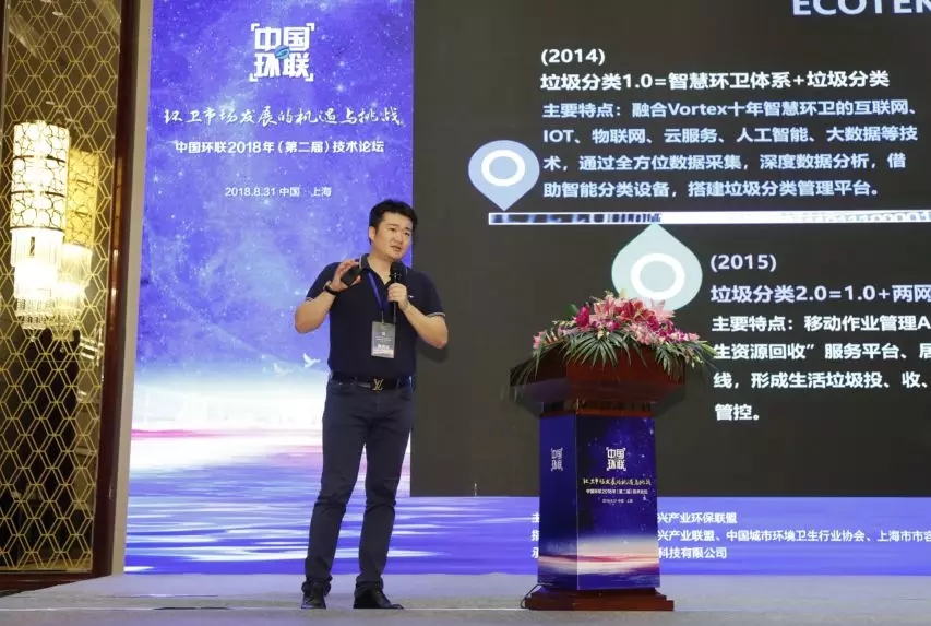 由中國戰(zhàn)略性新興產(chǎn)業(yè)環(huán)保聯(lián)盟主辦、上海環(huán)聯(lián)生態(tài)科技有限公司承辦的“中國環(huán)聯(lián)2018年(第二屆)技術(shù)論壇”日前在上海召開。蘇州市伏泰信息科技股份有限公司李曉華博士在本次論壇上重點報告了公司基于十年智慧環(huán)衛(wèi)匠心打造的全循環(huán)智能分類生態(tài)系統(tǒng)(ECOTEK),李博士從伏泰匠心十年的創(chuàng)新實踐、ECOTEK系統(tǒng)參與垃圾分類的歷史及最終形成的垃圾分類4.0 全循環(huán)智能分類生態(tài)系統(tǒng)三個方面發(fā)表了演講,與各位嘉賓深入交流了垃圾分類理念。