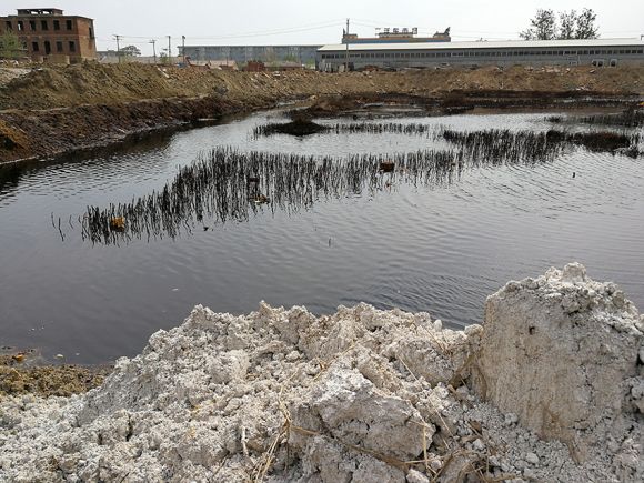 大城縣政府發(fā)布的《說(shuō)明》顯示,兩滲坑均位于大城縣南趙扶鎮(zhèn),分別為原南趙扶磚廠滲坑和原化肥廠滲坑,系由旺村鎮(zhèn)村民李某某叔侄將廢酸傾倒進(jìn)坑塘所致。2014年3月,大城縣人民政府經(jīng)過(guò)調(diào)查比較,選定廊坊碧水源對(duì)化肥廠滲坑進(jìn)行治理。
