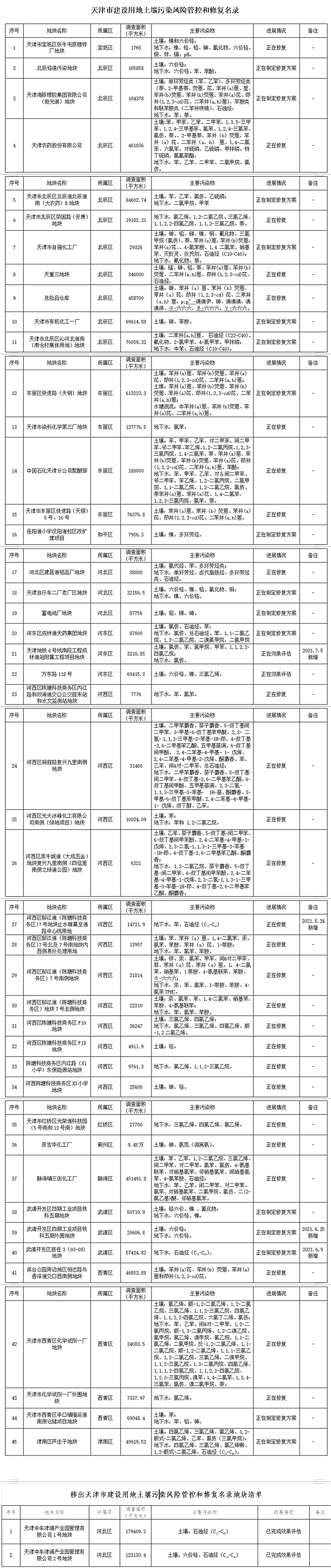 市生態(tài)環(huán)境局 市規(guī)劃資源局關(guān)于更新發(fā)布《天津市建設(shè)用地土壤污染 風(fēng)險(xiǎn)管控和修復(fù)名錄》的通知各區(qū)生態(tài)環(huán)境局、規(guī)劃資源分局: 為貫徹落實(shí)《中華人民共和國(guó)土壤污染防治法》、《天津市土壤污染防治條例》,加強(qiáng)我市建設(shè)用地土壤環(huán)境管理,實(shí)行建設(shè)用地土壤污染風(fēng)險(xiǎn)管控和修復(fù)名錄制度,根據(jù)我市建設(shè)用地地塊風(fēng)險(xiǎn)評(píng)估和治...
