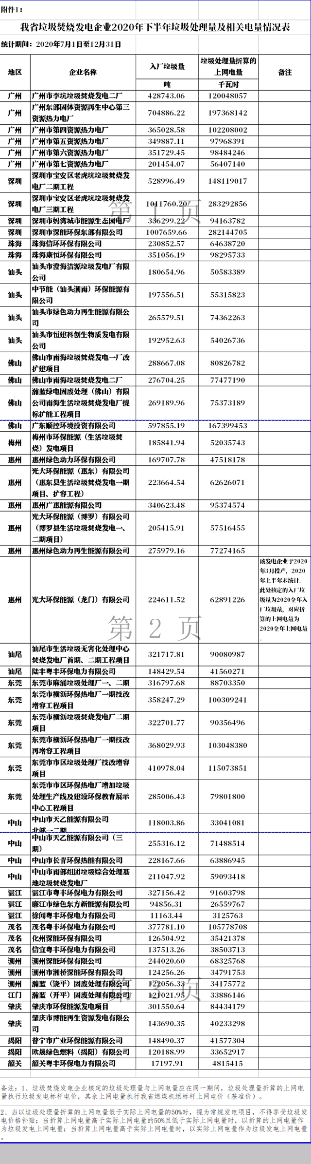 廣東省發(fā)展改革委關(guān)于公布有關(guān)垃圾焚燒發(fā)電企業(yè)2020年下半年和2021年上半年垃圾處理量及相關(guān)電量的通知粵發(fā)改價格函〔2022〕117號各地級以上市發(fā)展改革局(委),廣東電網(wǎng)公司,深圳供電局,相關(guān)垃圾焚燒發(fā)電企業(yè): 根據(jù)原省物價局《轉(zhuǎn)發(fā)國家發(fā)展改革委關(guān)于完善垃圾焚燒發(fā)電價格政策的通知》(粵價〔201...