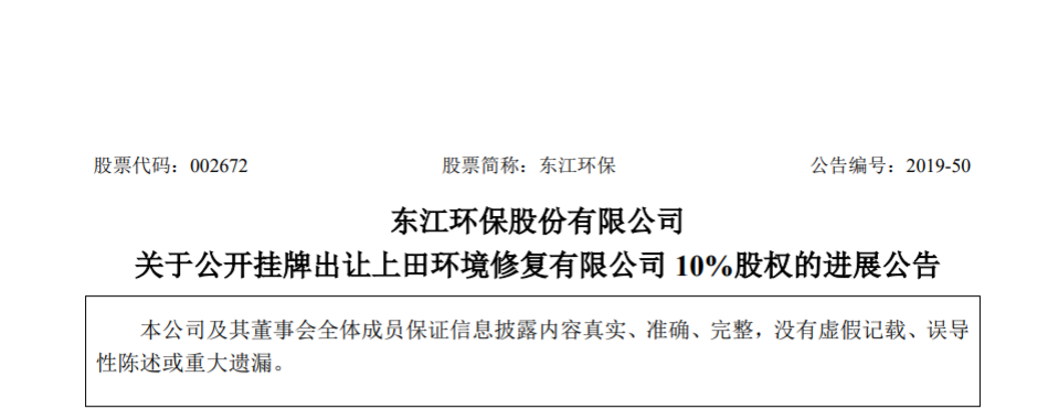 今日,中國環(huán)聯(lián)網(wǎng)獲悉,東江環(huán)保(00895)發(fā)布公告,2018年12月24日,公司第六屆董事會(huì)第二十六次會(huì)議審議通過了《關(guān)于擬公開掛牌出讓上田環(huán)境修復(fù)有限公司10%股權(quán)的議案》,公司董事會(huì)同意通過公開掛牌方式出讓公司持有的上田環(huán)境修復(fù)有限公司10%股權(quán),掛牌底價(jià)為人民幣2500萬元。根據(jù)進(jìn)展,光大環(huán)...