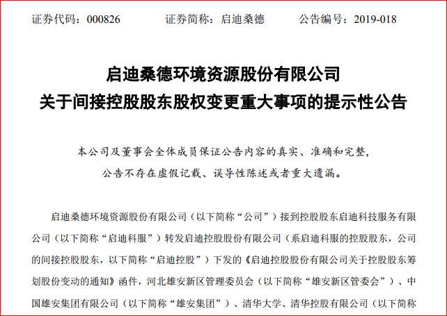 啟迪桑德(000826)、啟迪古漢(000590)3月21日早間雙雙發(fā)布公告顯示,啟迪桑德和啟迪古漢均接到控股股東啟迪科服轉(zhuǎn)發(fā)啟迪控股(系啟迪科服的控股股東,兩家公司的間接控股股東)下發(fā)的《啟迪控股股份有限公司關于控股股東籌劃股份變動的通知》函件,雄安新區(qū)管委會、雄安集團、清華大學、清華控股及啟迪控...
