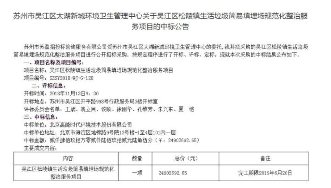 本小贏家剛剛從蘇州市公共資源交易中心網(wǎng)獲悉,北京高能時代環(huán)境技術(shù)股份有限公司中標吳江區(qū)松陵鎮(zhèn)生活垃圾簡易填埋場規(guī)范化整治服務(wù)項目,合同2490萬元。 另外本小贏家從湖北政府購買服務(wù)信息平臺獲悉,北京高能時代環(huán)境技術(shù)股份有限公司中標荊門市中心城區(qū)生活垃圾焚燒處置項目。本項目建設(shè)地點位于荊門市高新區(qū)·掇...